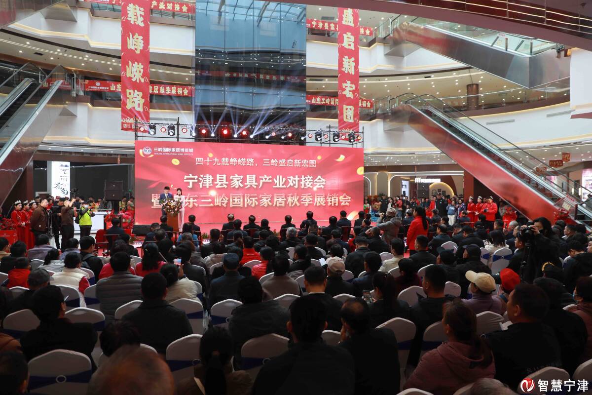 智慧宁津11月8日讯 11月8日,宁津县家具产业对接会暨山东三岭国际家居秋季展销会启幕。省家具协会主席牛广霞,有关市级领导和市直部门负责人,县委书记高善玉,县委副书记、县长张健捷,县人大常委会主任张会利,县政协主席武永生以及相关企业和兄弟地区家具协会负责人出席。