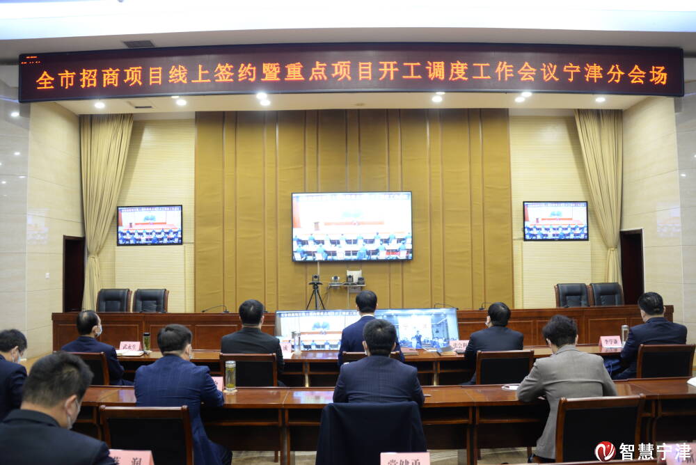 智慧宁津3月21日讯 3月21日,全市招商项目线上签约暨重点项目开工调度会议召开。高善玉、王成、张会利、武永生、李学谦等县级领导同志在我县分会场参加会议。